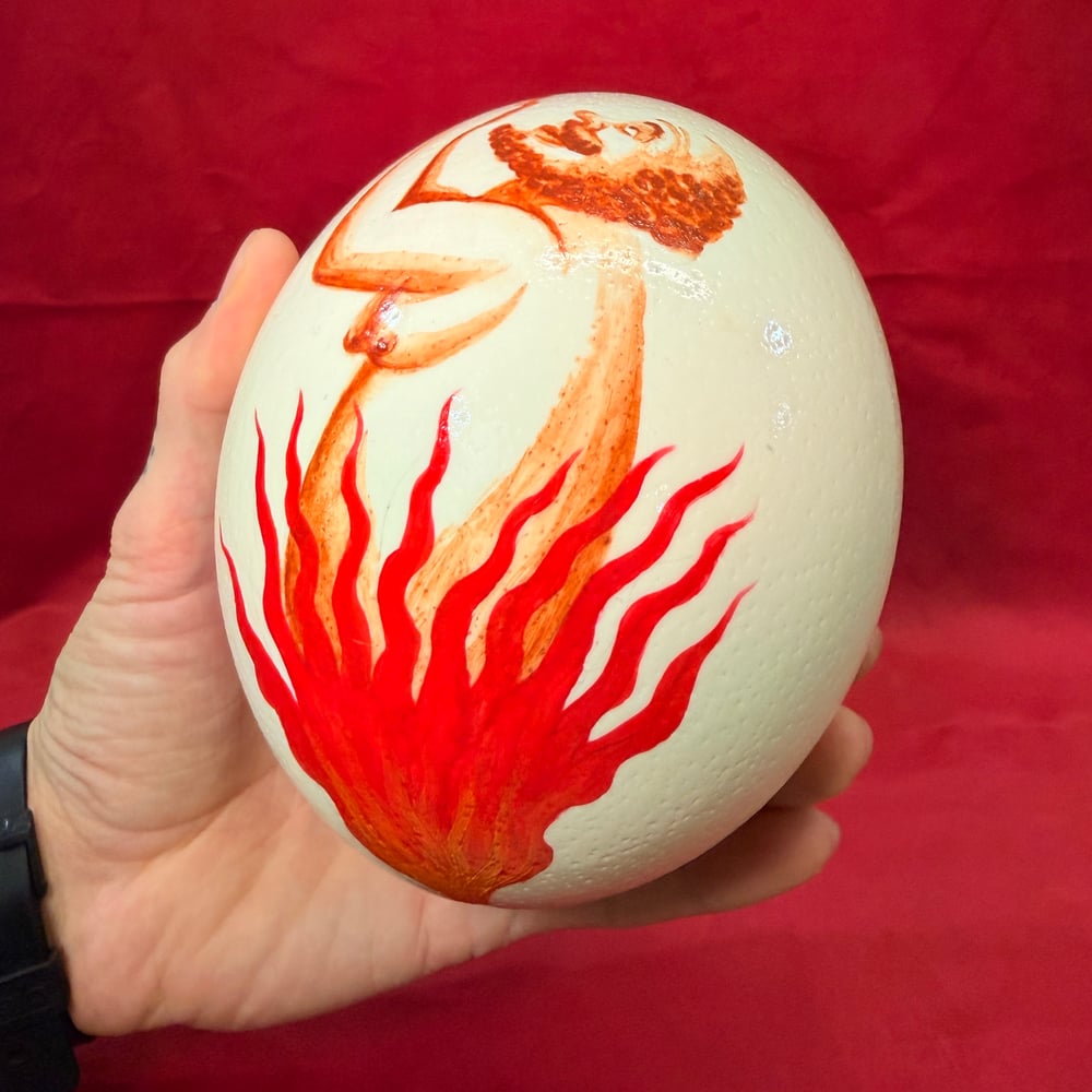 Oil and acrylic paint on ostrich egg.